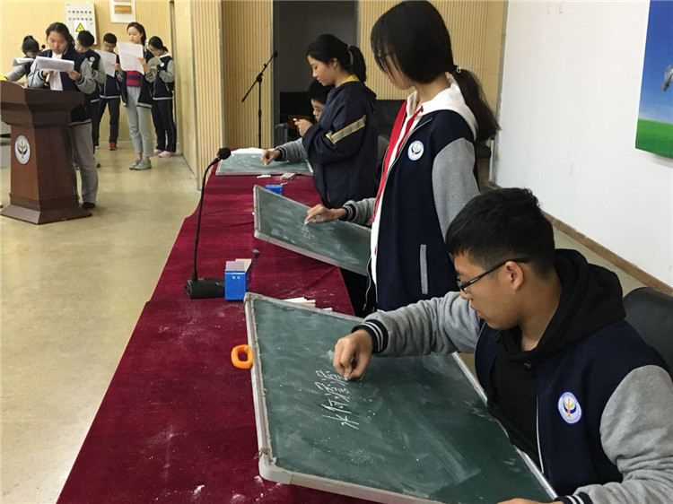 大賽共分三輪,評出個人賽、團隊賽和班級集體賽的冠亞軍。首先開始的是團隊賽,各班的代表隊首先在主持人的介紹下精彩亮相,激情澎湃的喊出自己的隊名和口號,讓大賽一開始就出現(xiàn)了陣陣高潮。接著各隊互相出題,答題的隊伍摩拳擦掌,比賽開始了,出題的小組可謂“絞盡腦汁”的難為答題隊,而答題隊沉著冷靜,不假思索的就寫出了正確答案,引得全場尤其是答題隊所在的班級陣陣掌聲和驚嘆聲。