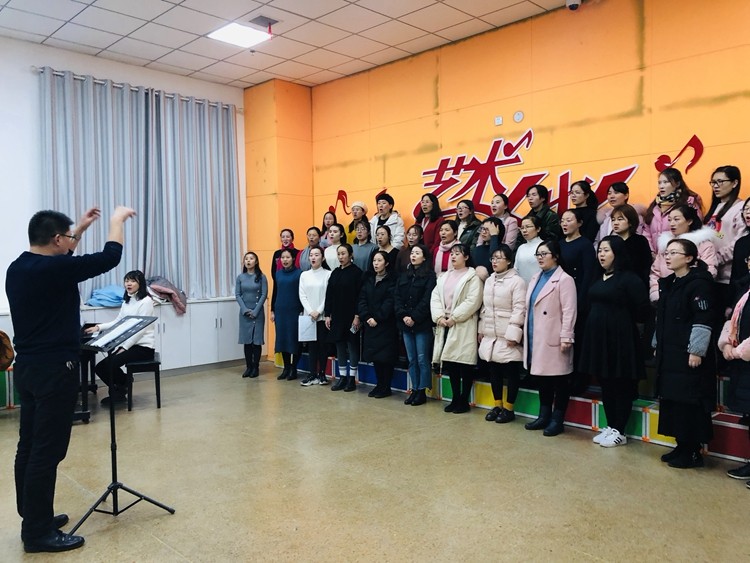 接到活動通知后,我校高度重視本次活動,在教科研發(fā)中心的正確指導下,在各學部的配合下,我校于2018年10月份迅速組建成立了教師合唱團,許興華副校長擔任團長,羅強副校長親自擔任指揮,合唱團成員主要由小學一年級至高三年級(共跨12個年級)熱愛合唱藝術的年輕教師組成。