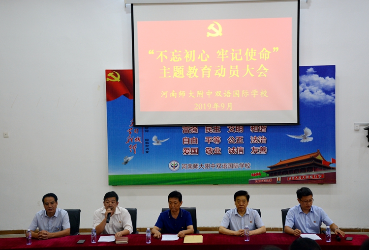 為深入學(xué)習(xí)貫徹全市“不忘初心、牢記使命”主題教育工作會(huì)議精神,9月23日,河南師大附中雙語國(guó)際學(xué)校召開“不忘初心、牢記使命”主題教育布置會(huì),中層以上領(lǐng)導(dǎo)參加了會(huì)議。要求認(rèn)真學(xué)習(xí)中央關(guān)于主題教育的最新精神,充分認(rèn)識(shí)開展主題教育的重大意義,準(zhǔn)確把握主題教育的目標(biāo)任務(wù),對(duì)學(xué)校主題教育作出整體部署。