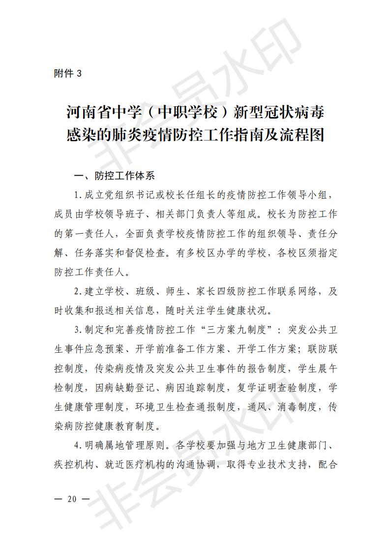 《河南省學(xué)校新型冠狀病毒感染的肺炎疫情防控工作指南及流程圖》