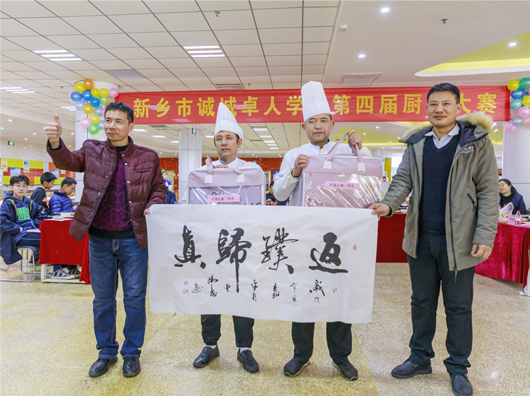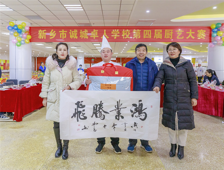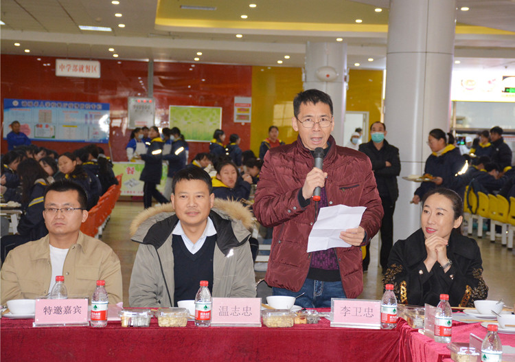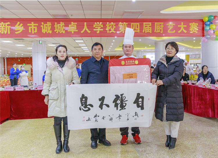 為進(jìn)一步提高我校餐廳從業(yè)人員的烹飪水平,提升餐飲服務(wù)質(zhì)量,12月18日中午,由學(xué)校后勤保障部舉辦的“第四屆廚藝大賽”在餐廳一樓舉行。新鄉(xiāng)市教育局保健站主任趙敬亮、市場監(jiān)督管理局食品科張操同志、誠城集團(tuán)教育總監(jiān)楊修家、軍旅書法家太行書畫研究院副院長曹揚(yáng)憲、中國攝影家協(xié)會(huì)新鄉(xiāng)紫陽攝影家協(xié)會(huì)會(huì)長魏清省五位特邀嘉賓與我校領(lǐng)導(dǎo)、老師代表、家長代表和學(xué)生代表一同出席了本次廚藝比賽?;顒?dòng)由食品安全專管員路國偉主持。