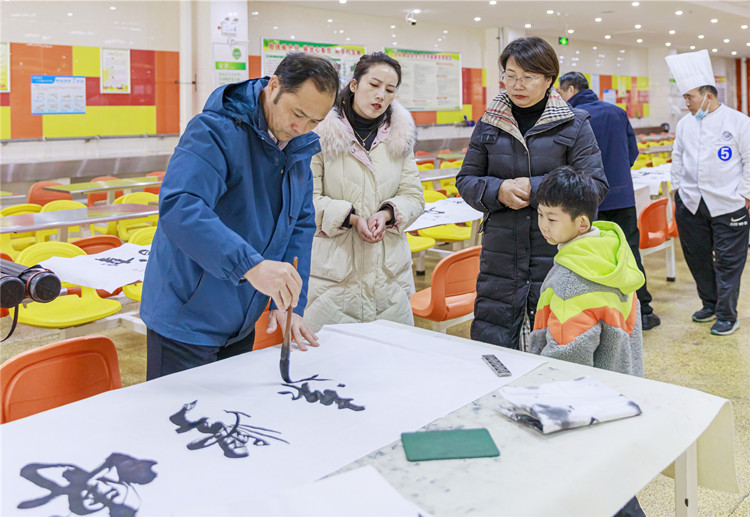 活動(dòng)比賽現(xiàn)場氣氛熱烈,鏡箱豆腐、蒜香魚、糖醋排骨、番茄燉牛腩、西芹炒百合、毛血旺、油燜大蝦、上海生煎、龍鳳呈祥、羊肉熗鍋面、多味披薩、麻辣拌麻辣燙…….選手們的精湛廚藝,贏得了現(xiàn)場評(píng)委和觀賽師生的喝彩。比賽過程中曹揚(yáng)憲院長行云流水的現(xiàn)場書法作品和高一二班王芃悅同學(xué)的獨(dú)舞《萬疆》又將比賽推向了高潮。