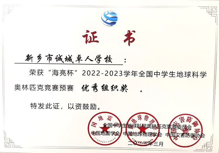 2023年4月25日,我校地理組首次組織學(xué)生參加“海亮杯”全國中學(xué)生地球科學(xué)奧林匹克競賽預(yù)賽,經(jīng)過老師的精心培養(yǎng)和學(xué)生的認(rèn)真學(xué)習(xí),在此次比賽中,我校收獲滿滿!我校被授予“優(yōu)秀組織獎”,陳丹靜、申綱、韓麗君、王肇星四位老師被評為“優(yōu)秀指導(dǎo)教師”,姚亦然、韓熠2名同學(xué)獲得河南省一等獎,鄭浩桐、吳怡霖、炎琦、尤軼珂、喬鏡羽、李一心、張溢瑤、馮康宇8名同學(xué)獲得河南省二等獎,王敏嘉、李想、左宇飛、王子涵、盧恩同、田培慶6名同學(xué)獲得河南省三等獎。教書育人,任重道遠(yuǎn),道阻且長,我校地理組將繼續(xù)稟賦精心教學(xué),潛心研究,繼續(xù)為學(xué)生實(shí)現(xiàn)夢想鋪墊更加平坦廣闊的道路!
