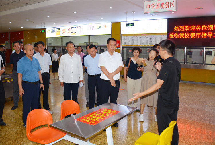 為提升學(xué)校食堂食品安全管理水平,有效推進(jìn)學(xué)校食品安全主體責(zé)任落實(shí),切實(shí)保障廣大師生飲食安全,8月29日上午,市政府食安辦組織全市各學(xué)校校長(zhǎng)到我校食堂進(jìn)行現(xiàn)場(chǎng)觀摩活動(dòng)。市政府食安辦主任,市市場(chǎng)監(jiān)管局黨組書(shū)記、局長(zhǎng)董文鳴、副局長(zhǎng)李寧、市教育局副局長(zhǎng)馮建及全市各縣(市、區(qū))中小學(xué)校長(zhǎng)和幼兒園園長(zhǎng)代表等一行100余人出席現(xiàn)場(chǎng)觀摩會(huì),誠(chéng)城集團(tuán)教育總監(jiān)楊修家、執(zhí)行校長(zhǎng)劉新選和工會(huì)主席兼后勤保障部主任李衛(wèi)忠等學(xué)校相關(guān)領(lǐng)導(dǎo)陪同觀摩。