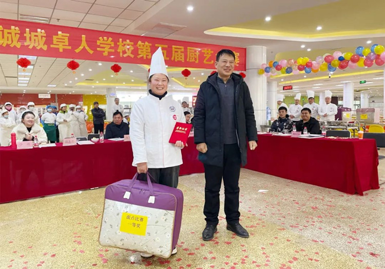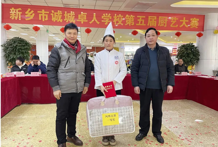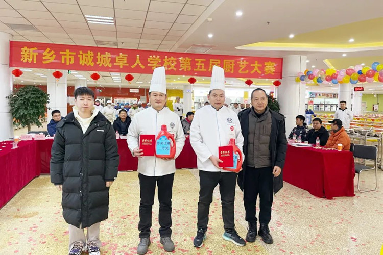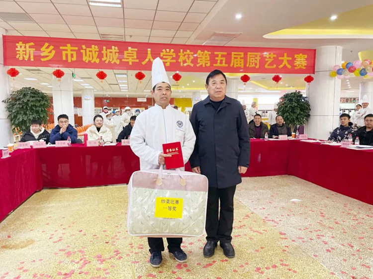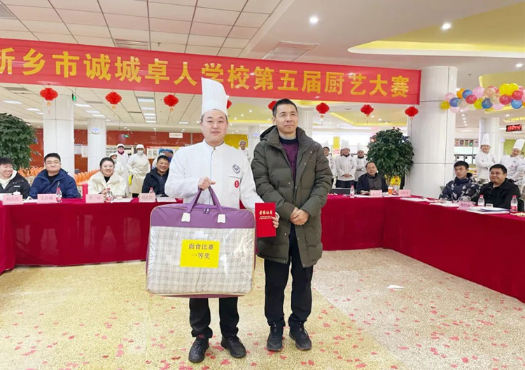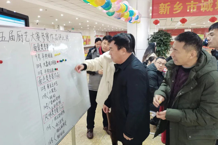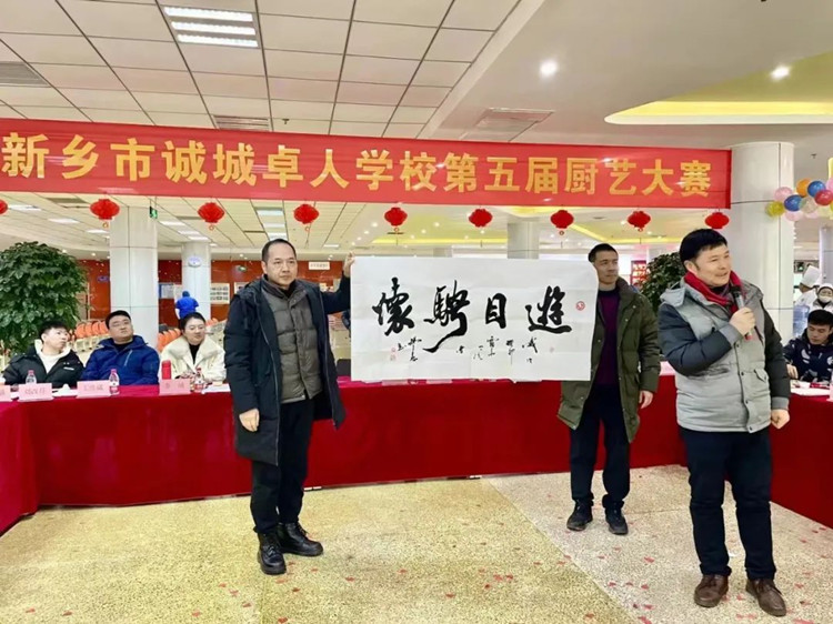 學(xué)校校長滑秀林、誠城集團教育總監(jiān)兼執(zhí)行校長楊修家、副校長溫志忠、校工會主席兼后勤保障部主任李衛(wèi)忠等領(lǐng)導(dǎo)、家長、學(xué)生代表70余人出席本次廚藝大賽,國家一級書法家、河南省太行書畫研究院院長曹揚憲和紅旗區(qū)市場監(jiān)管所張延國科長親臨現(xiàn)場。大賽分兩個環(huán)節(jié),一是現(xiàn)場廚師的才藝展示,二是對學(xué)生開展廚藝比拼(短視頻形式)進行總結(jié)表彰,學(xué)校食品安全專管員路國偉負責主持。