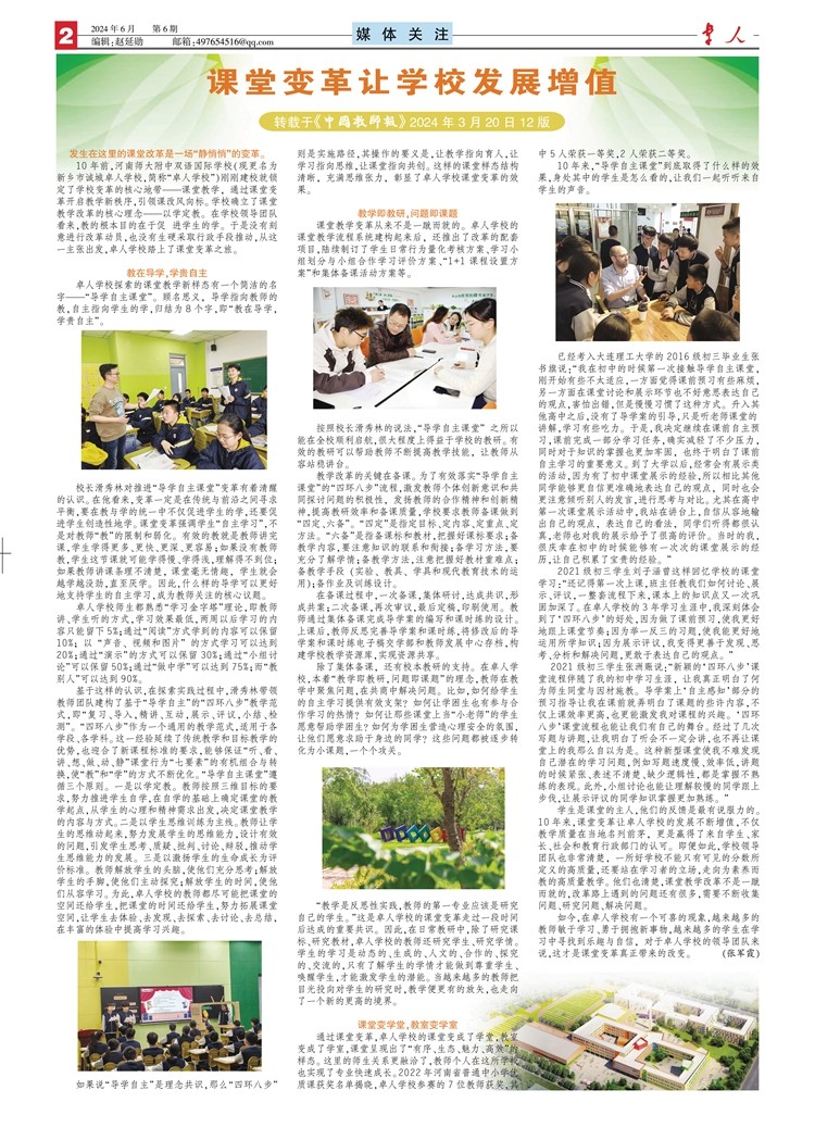 上一篇:【媒體聚焦】《中國(guó)教師報(bào)》2024年3月20日12版?課堂變革讓學(xué)校發(fā)展增值