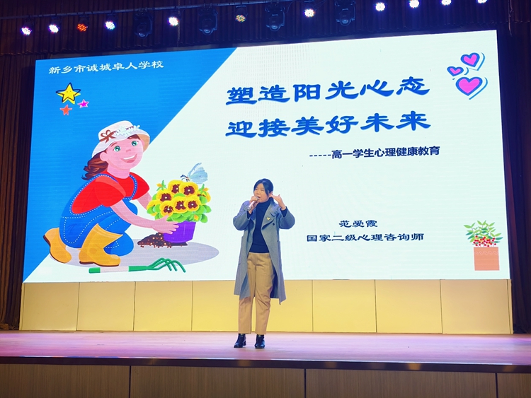 2025年3月5日下午,新鄉(xiāng)市誠(chéng)城卓人學(xué)校面向高一年級(jí)舉辦了一場(chǎng)主題為“塑造陽光心態(tài),迎接美好未來”的心理健康教育活動(dòng)。此次活動(dòng)由我校教師發(fā)展中心和高中部聯(lián)合舉辦,旨在幫助學(xué)生在高中階段保持積極心態(tài),合理規(guī)劃學(xué)業(yè)與生活,迎接未來的挑戰(zhàn)。學(xué)校領(lǐng)導(dǎo)高度重視并出席了本次活動(dòng)。