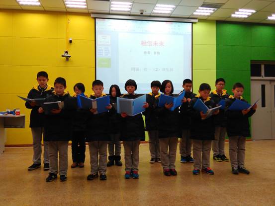 接著舉行了集體賽,各班同學(xué)激情高漲。分別朗誦了《少年中國說》、《相信未來》、《木蘭詩》,初一3班拔得頭籌。
