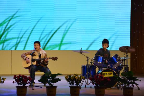 之后,各種節(jié)目輪番登場,異彩紛呈。由崔小哲、尚伊健同學(xué)帶來的薩克斯演奏《茉莉花》、《hey jude》,一下子就把現(xiàn)場熱情帶動起來。而由戲劇特長班帶來的小品《小保姆和錢包》更是讓同學(xué)們情緒跌宕起伏,時而氣憤不已,時而潸然淚下,無不感染在場的所有觀眾,牽動著每一顆觀眾的心。由喻福哲、劉育恒帶來的拉丁舞蹈《恰恰恰》又一次吸引了在場觀眾的眼球;楊天聞同學(xué)帶來的鋼琴演奏《夢中的婚禮》再次將全場氣氛帶動起來,劉念同學(xué)給我們帶來的古箏獨奏《雪山春曉》,舞蹈班的同學(xué)們?yōu)槲覀儙砭实慕治琛?/span>Breaking》、舞蹈《串燒鞋尖上的舞步》和舞蹈《我們的時代》等節(jié)目精彩表演都成為匯演的亮點之處。最后在,徐澤鵬、劉澤楷同學(xué)為我們帶來吉他、架子鼓表演《像風(fēng)一樣自由》又一次將匯演推上了高潮,隨后在合唱班同學(xué)們?yōu)槲覀儙淼暮铣陡街须p語的日子》中圓滿落下帷幕。