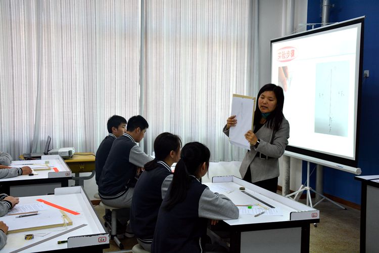 4月13日,直淑靜老師在C314物理實驗室為高二2班學(xué)生講解《探究力的平行四邊形定則》課題。