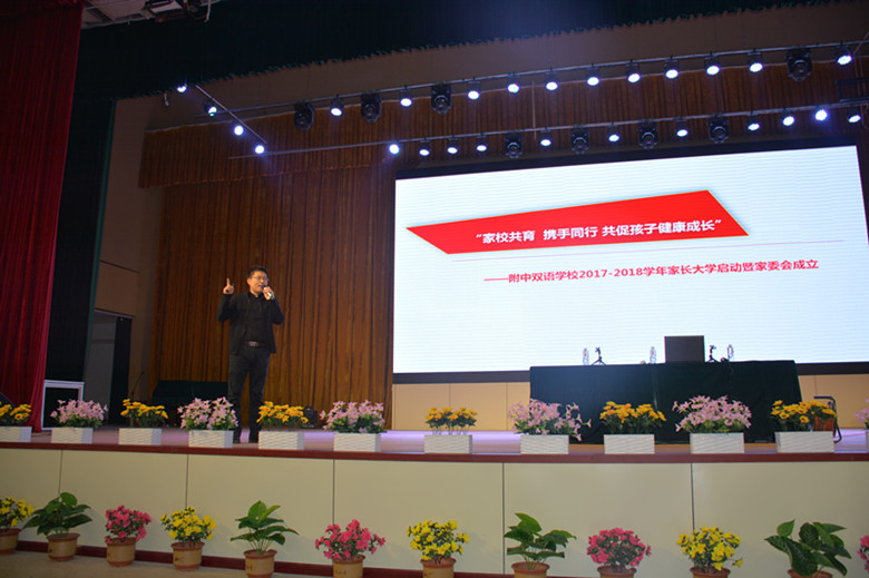 為加強家校交流與溝通,深入推進合力育人,共促孩子健康成長,10月14日,河南師大附中雙語國際學校舉行2017——2018年家長大學暨家長委員會成立大會。會議由校團委書記兼學部副主任郭學明主持。