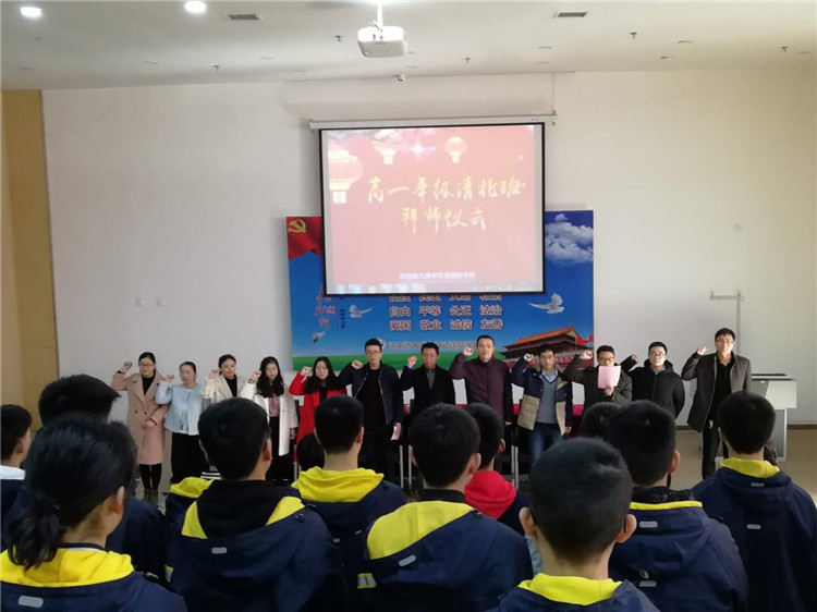 為了切實落實學(xué)校導(dǎo)師制工作,學(xué)科教師對每個班級的學(xué)生進(jìn)行一對一個性化輔導(dǎo),使學(xué)生的成績更上一層樓。為了讓老師和學(xué)生進(jìn)一步重視這件事, 3月15日上午9:20,我校高一年級清北班學(xué)生在道德講堂舉行拜師活動。出席此次活動的領(lǐng)導(dǎo)有:副校長羅強(qiáng),黨委書記兼教科研中心主任李現(xiàn)山,中學(xué)部主任溫志忠,團(tuán)委書記兼中學(xué)部副主任郭學(xué)明。儀式由高一年級老師王肇星主持。