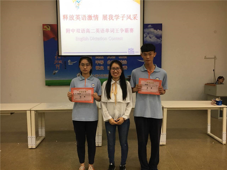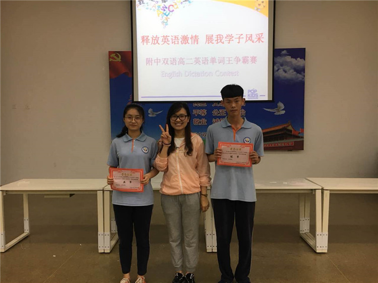 為了激發(fā)學(xué)生學(xué)習(xí)英語興趣,豐富詞匯量,提高學(xué)生英語綜合素質(zhì),給學(xué)生提供一個(gè)展示自我的平臺(tái),高二年級(jí)開展了以“釋放英語激情,展我學(xué)子風(fēng)采”為主題的英語單詞王爭霸賽。本次大賽共分為激情團(tuán)隊(duì)賽、活力小組賽和魅力個(gè)人賽三個(gè)環(huán)節(jié)。