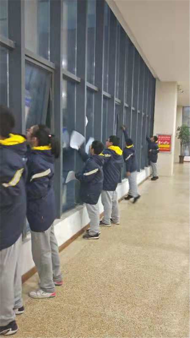 各班也對(duì)教室衛(wèi)生作如下要求:門窗保持清潔,玻璃用干布擦;前、后門門檻做到無積塵,門檻角落處用刷子清除干凈;室內(nèi)外墻面做到墻面清潔,宣傳欄張貼整齊、規(guī)范;地面保持清潔,無污跡,無紙屑等;課桌椅桌面無涂跡、整潔,擺放整齊;講臺(tái)的臺(tái)面、臺(tái)下擺放整潔,無雜物,無灰塵;衛(wèi)生角工具擺放整齊,周邊地面無垃圾,墻面無污漬,垃圾及時(shí)清倒。
