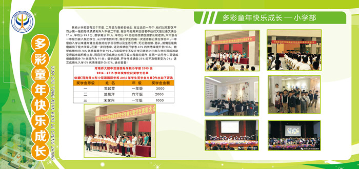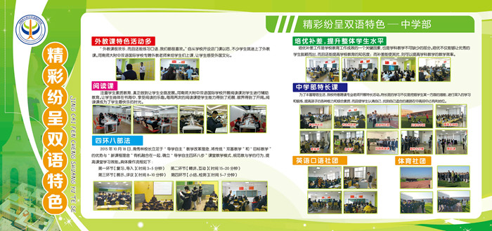 濃郁的校園文化熏陶人,樸實、敦厚的校風感染人,先進的辦學理念教育人,和諧、融洽的環(huán)境氛圍影響人。以下二十四面展示充分介紹了我校濃厚的文化風采,獨特的教育魅力。